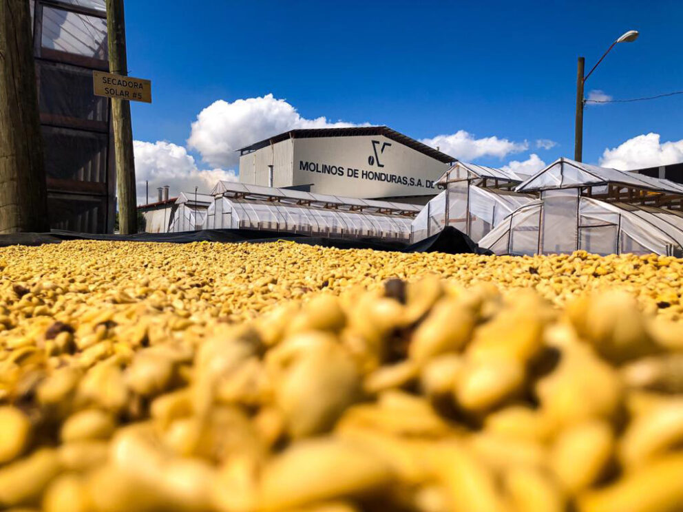 Deze partij begint met vers geoogste koffiebessen, een mix van Mundo Novo en Catuai van verschillende kleine boeren, verwerkt in de natte molen van Comayagua. De koffie wordt 20-25 dagen op patio’s gedroogd tot het vochtpercentage ~10,5% bedraagt.